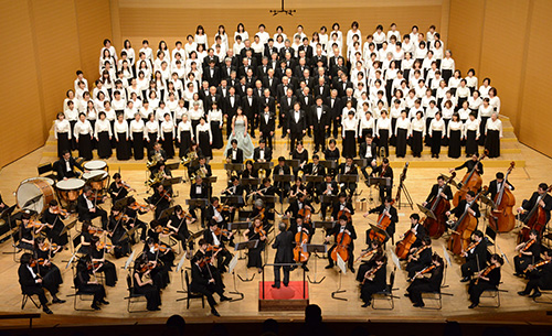 在京のプロオーケストラ、プロの指揮者ならびにソリストを迎え、公募区民の合唱団とともに毎年12月に開催しています。