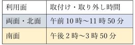 ※取付け・取外し時間を利用面によって指定させていただきます。(上記表参照)