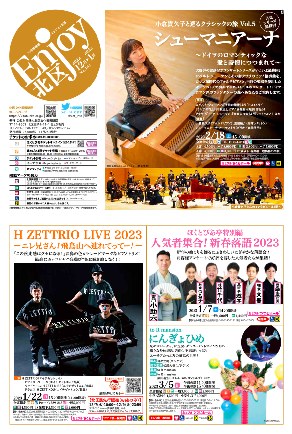「エンジョイ北区」は、(公財)北区文化振興財団主催事業を中心に、