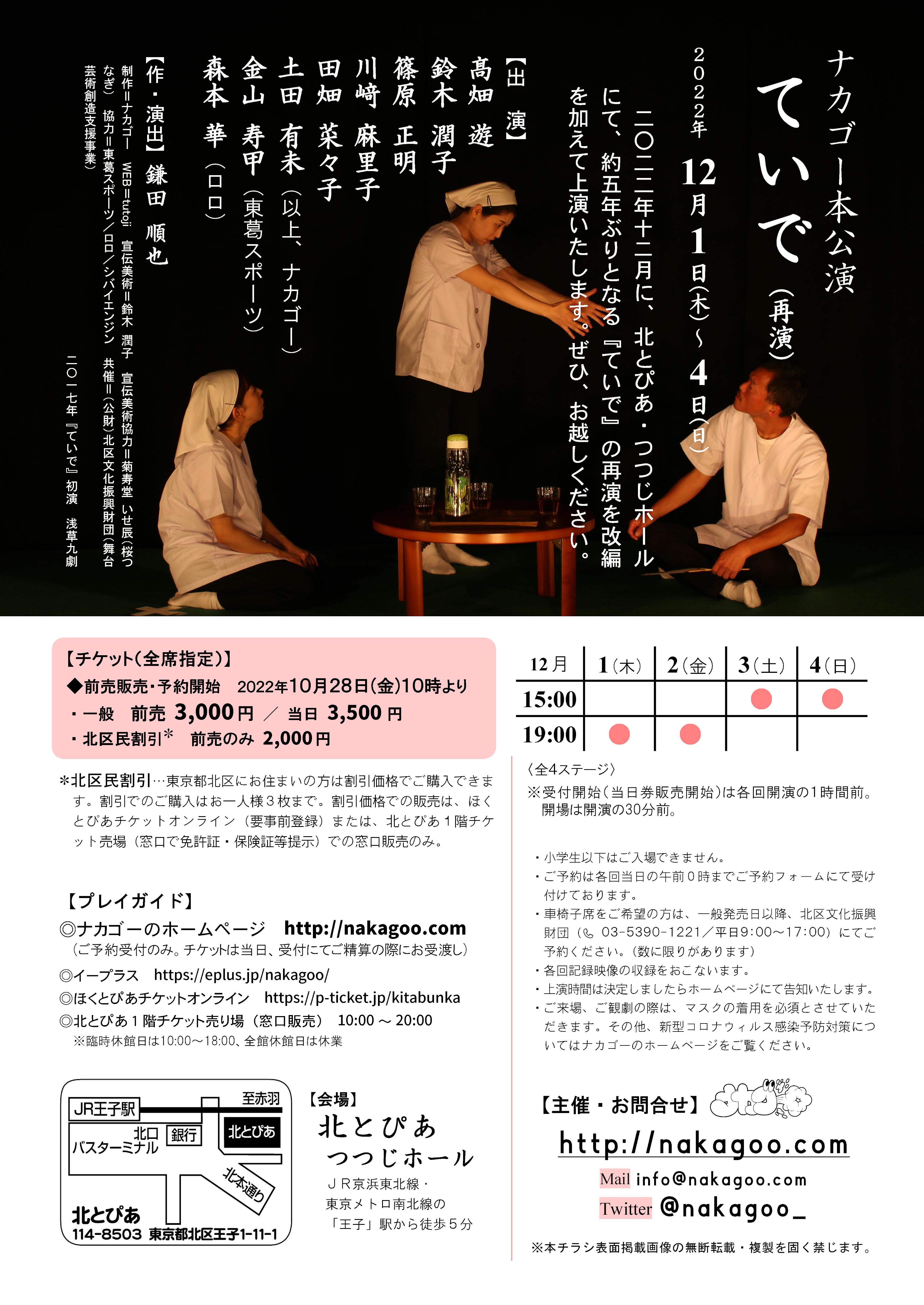 2022年12月に北とぴあ・つつじホールにて、約五年ぶりとなる『ていで』の再演を改編を加えて上演いたします。ぜひ、お越しください。