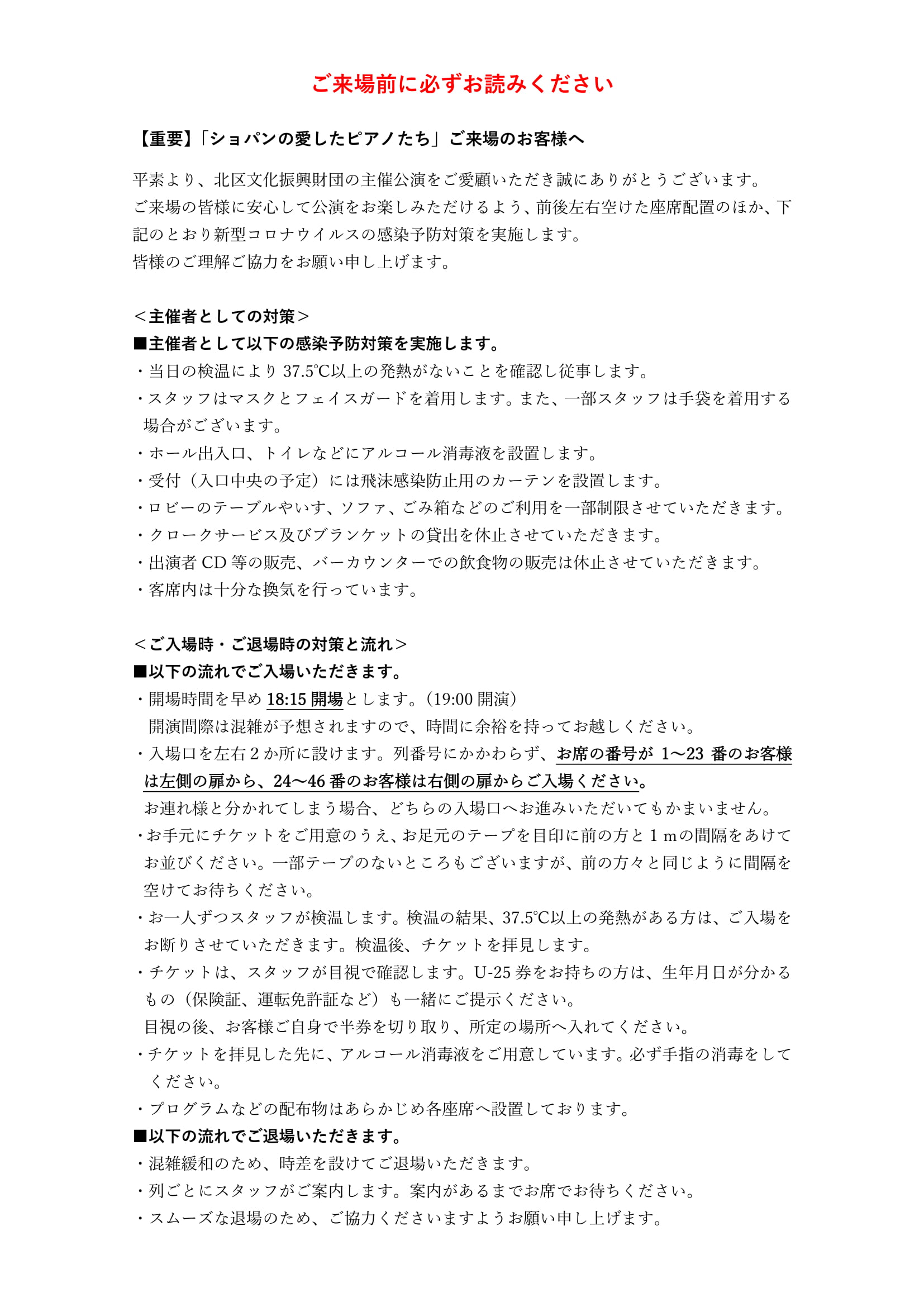 7/8(水)「ショパンの愛したピアノたち」は、新型コロナウイルス感染拡大防止の観点から、空席を設けた新たな配席で公演を実施します。このため、チケットをお持ちのお客様に対して、以下の通りご連絡をさせていただきます。
