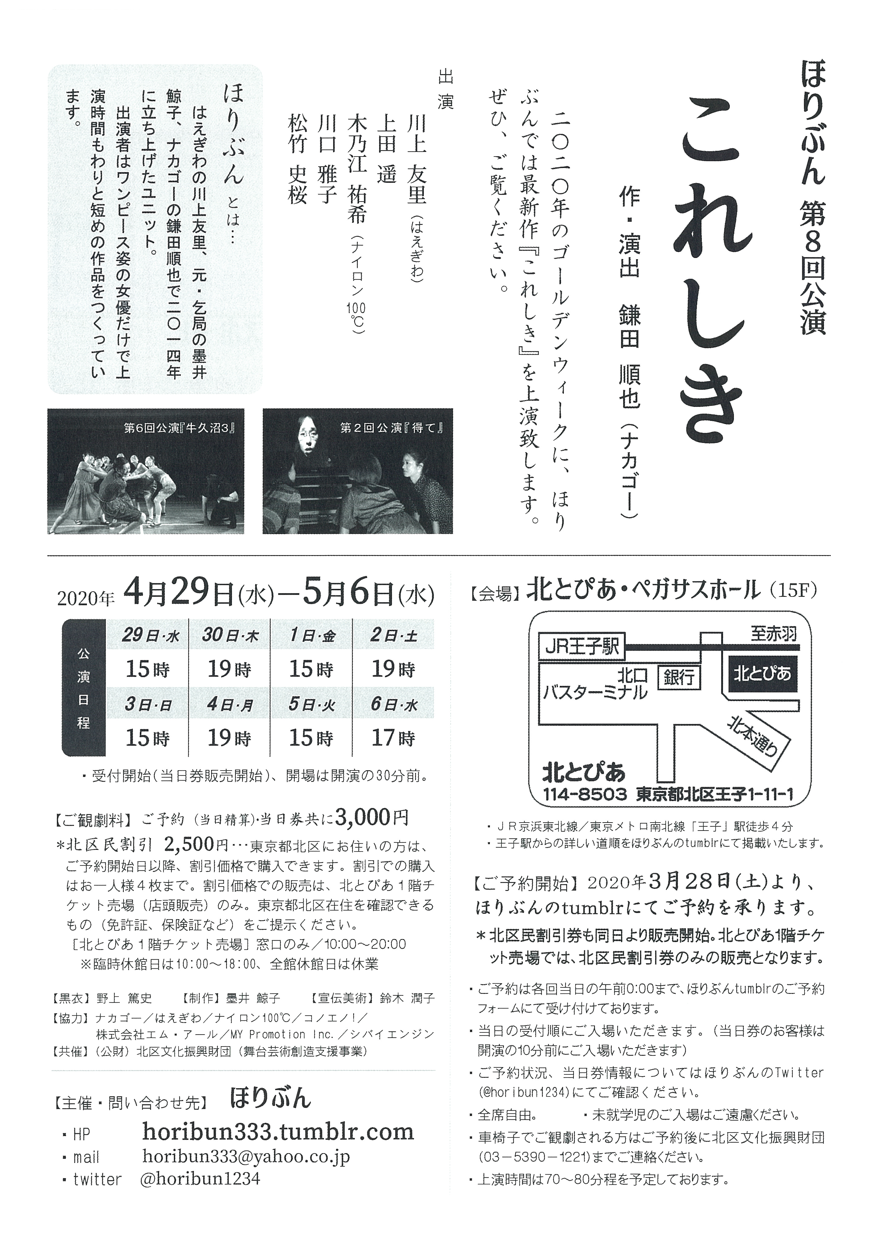 2020年のゴールデンウィークに、ほりぶんでは最新作『これしき』を上演致します。ぜひ、ご覧ください。