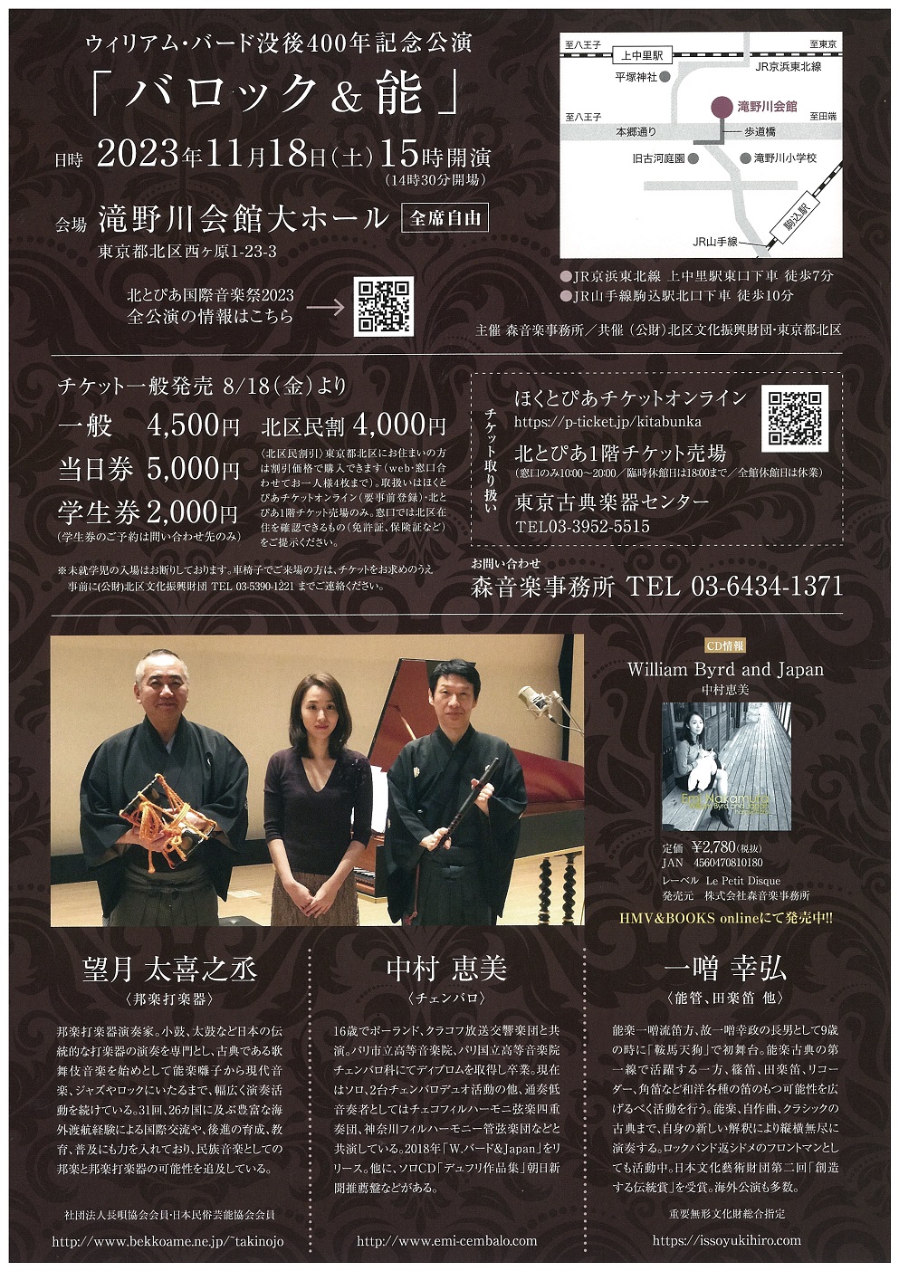 〜ウィリアム・バード没後400年記念公演〜 『バロック&能』