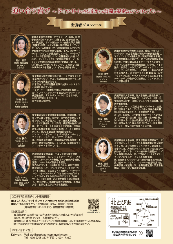 - ※東京都北区にお住まいの方は北区民割引価格で購入できます。(割引での購入はお一人様4枚まで)。取扱いは「ほくとぴあチケットオンライン」(要事前登録)および「北とぴあ1階チケット売場(店頭販売)」のみ。来店購入の方は東京都北区在住を確認できるもの(保険証、免許証など)をご提示ください。