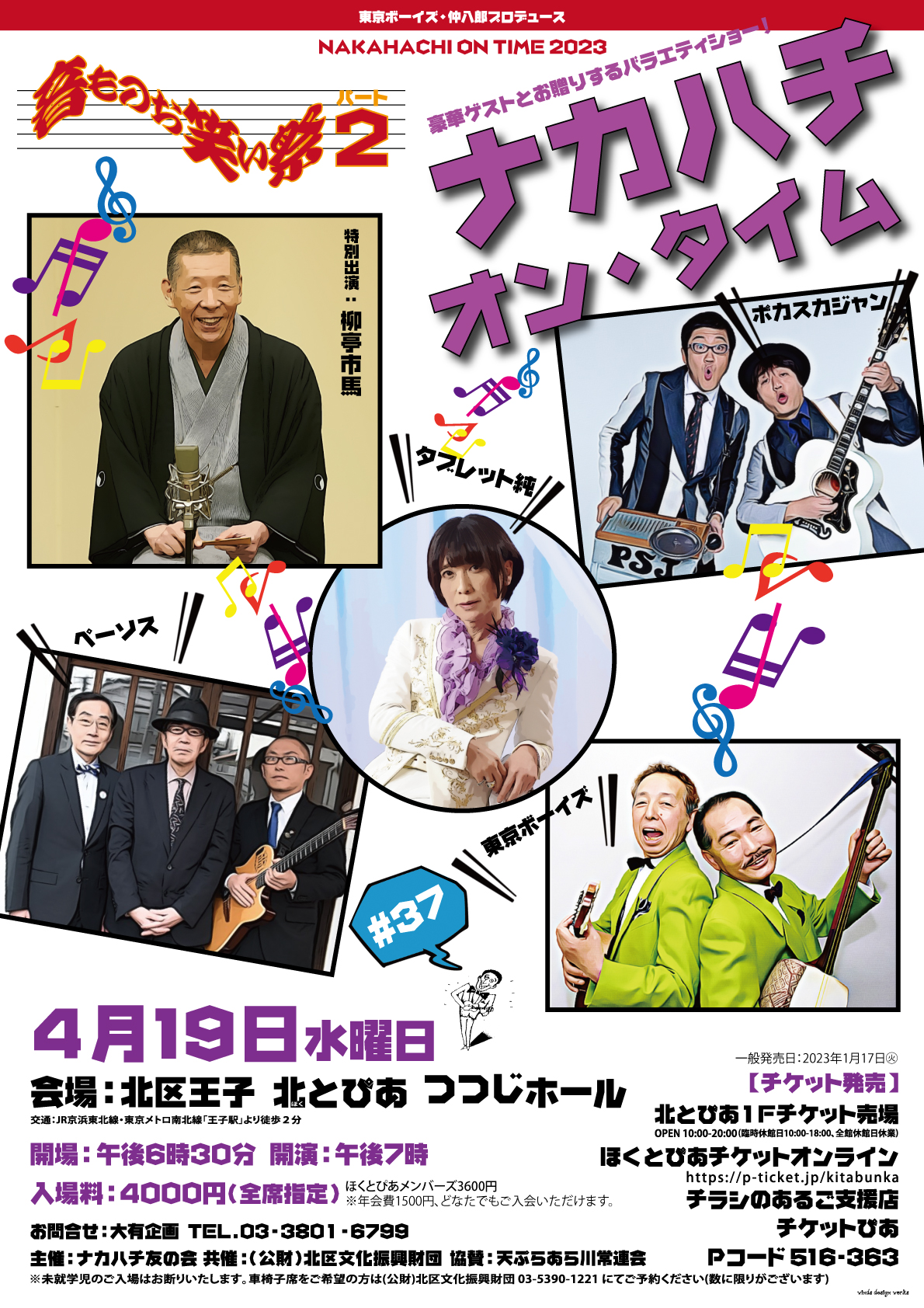お知らせ詳細 2022年12月28日 「ナカハチ・オン・タイム#37」情報を公開しました。 2023/4/19(水)「ナカハチ・オン・タイム#37 ~音ものお笑い祭パート2~」 詳細はこちらからご覧ください。