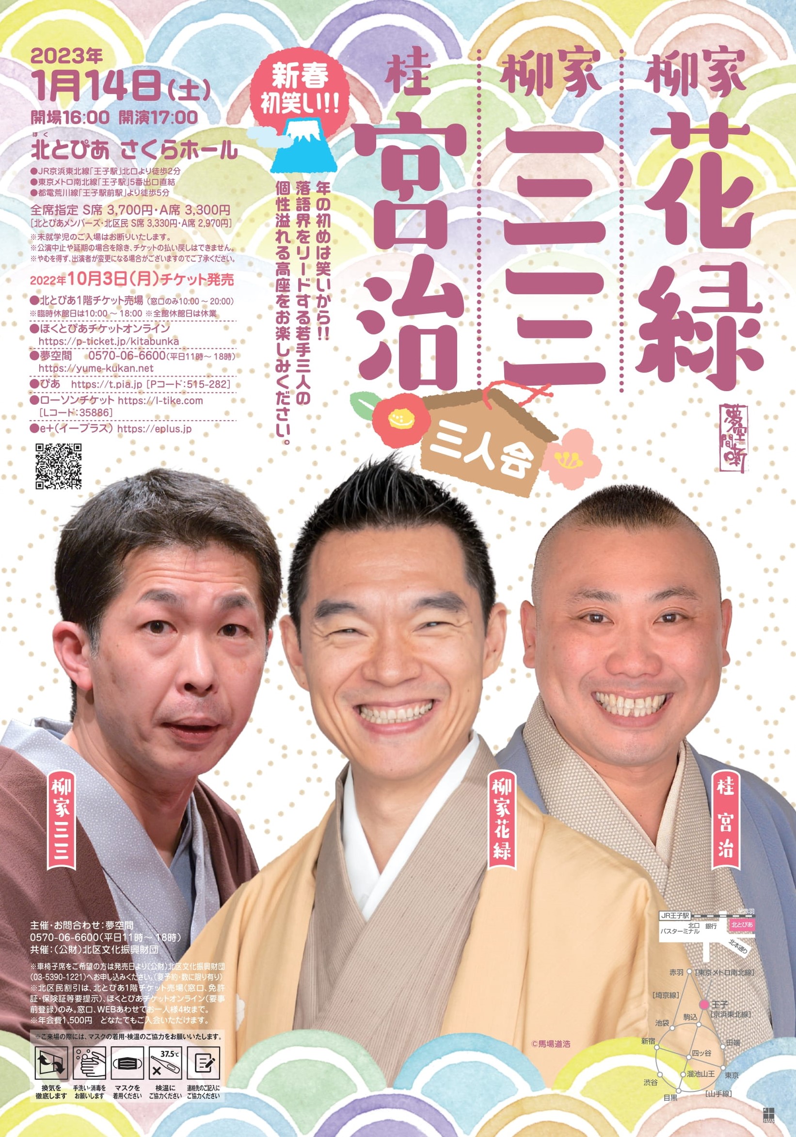 1/14(土)開催「新春初笑い!!! 柳家花緑・柳家三三・桂宮治 三人会」は