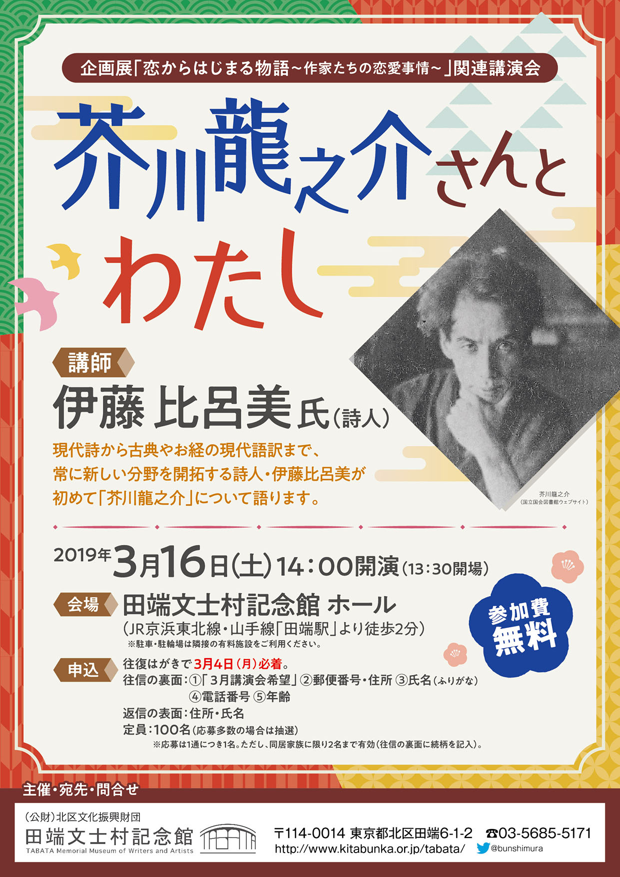 | 概要 | 現代詩から古典やお経の現代語訳まで、常に新しい分野を開拓する詩人・伊藤比呂美。自身の芥川体験をもとに、初めて「芥川龍之介」について語ります。 |