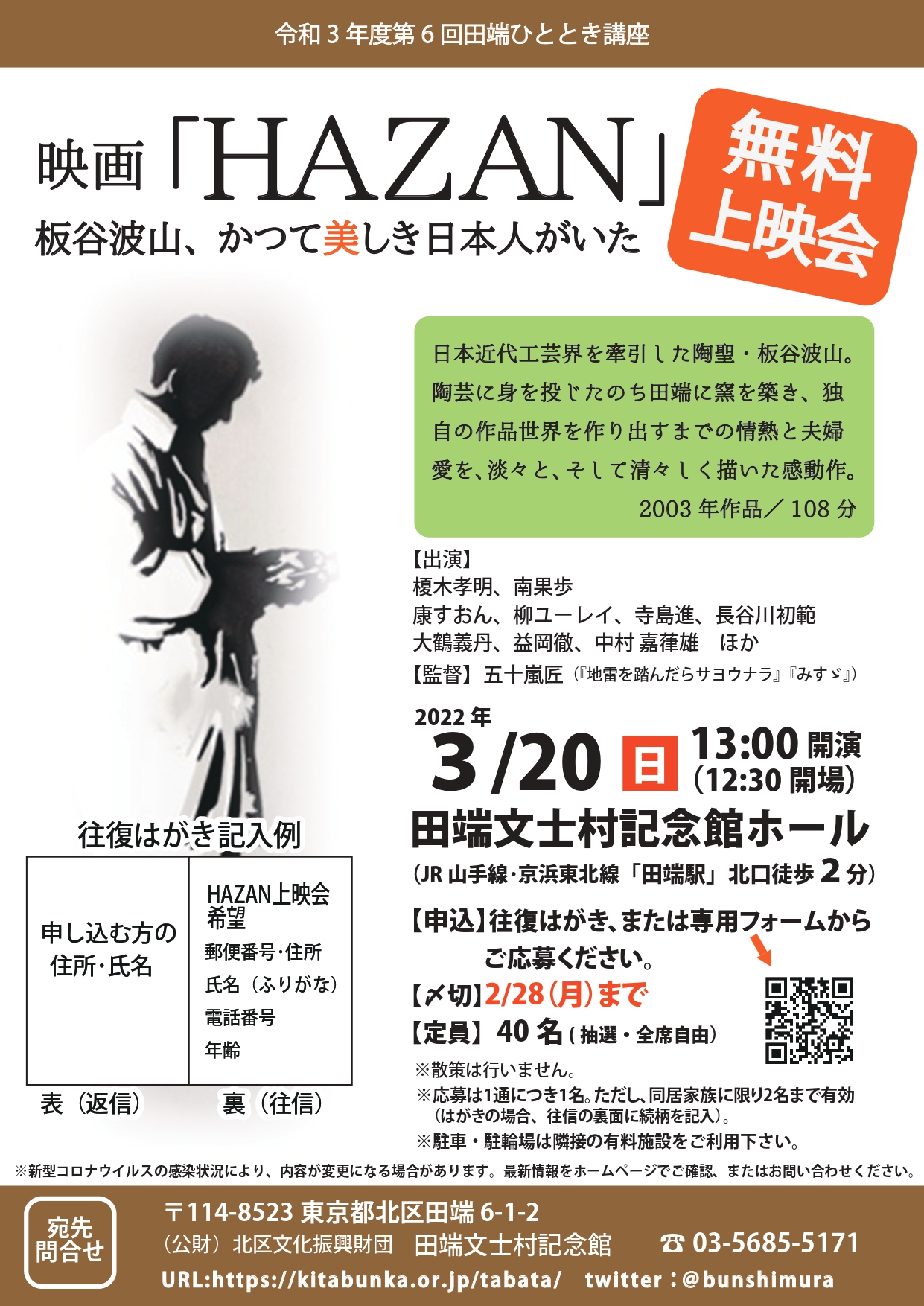 映画「HAZAN」無料上映会 板谷波山、かつて美しき日本人がいた